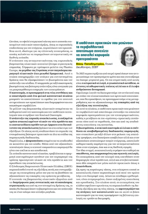 • Manufacturing, Ελληνική Βιομηχανία 2025- Β. Παπαδημητρίου | Η υιοθέτηση πρακτικών που μειώνουν το περιβαλλοντικό αποτύπωμα συνεχίζει να αποτελεί κορυφαία προτεραιότητα