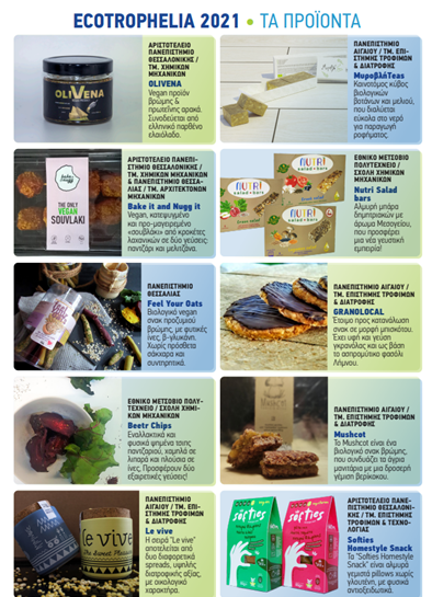 Στις 13 Σεπτεμβρίου, πραγματοποιήθηκε ο Εθνικός Διαγωνισμός Οικολογικών-Καινοτόμων Προϊόντων Διατροφής ECOTROPHELIA 2021, που συμπλήρωσε 11 χρόνια αδιάκοπης και επιτυχημένης παρουσίας στην Ελλάδα.Φέτος, λόγω των ιδιαίτερων συνθηκών εξαιτίας της πανδημίας, ο Διαγωνισμός διεξήχθη με φυσική παρουσία μόνο των διαγωνιζόμενων ομάδων και της Εθνικής Κριτικής Επιτροπής, λαμβάνοντας όλα τα απαραίτητα μέτρα ασφαλείας.