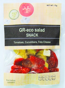 Description: The GR-eco salad snack is a stable under ambient storage conditions Greek salad (vegetable slices-cubes) snack.