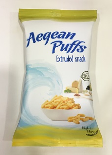 Description: Aegean Puffs is an innovative extruded snack made 100 % from local raw materials produced in the islands of the Aegean.