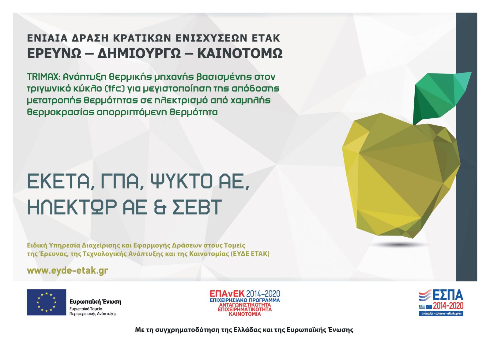 The main objective of TRIMAX (Development of a heat engine based on the trilateral flash cycle (tfc) for maximization of heat to power conversion efficiency of low temperature waste heat) is to develop, manufacture and assess experimentally in real environment a heat engine based on the Trilateral Flash Cycle (TFC), of 10-15 kW capacity which at low temperature (up to 130 oC). The aim is to improve the heat to power conversion efficiency up to 20% in comparison with the traditional Organic Rankine Cycle (ORC) that is almost exclusively applied.